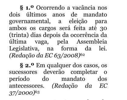 Para ser eleito, o governador tampão precisa de 13 votos do total de 24 deputados. “A Mesa Diretora da Assembleia Legislativa publicará edital fixando o calendário da eleição indireta, com discriminação dos prazos e das regras para a prática dos atos relativos ao requerimento, impugnação e julgamento dos registros de candidaturas, e contendo a convocação para a reunião extraordinária”, diz o projeto, ainda sem definição de data do pleito.