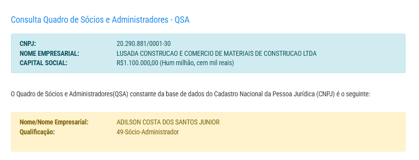 A empresa possui capital social de R$ 1,1 milhão e pertence a Adilson Costa dos Santos Júnior.