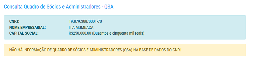 A empresa possui capital social de R$ 250 mil e não há informações de sócios administradores.