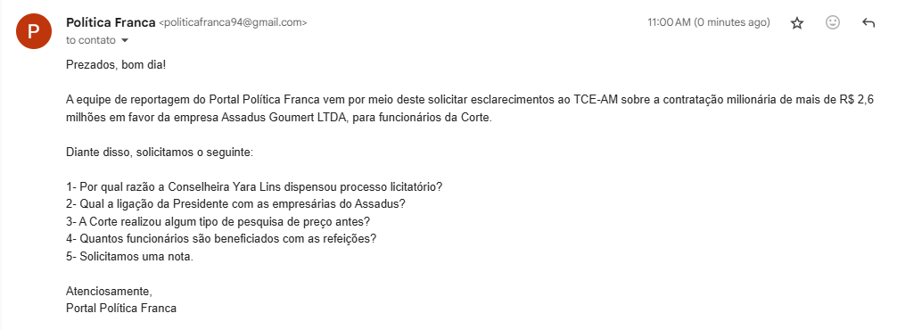 A equipe de reportagem do Portal Política Franca encaminhou por e-mail uma solicitação de informações sobre esse contrato ao Tribunal de Contas.