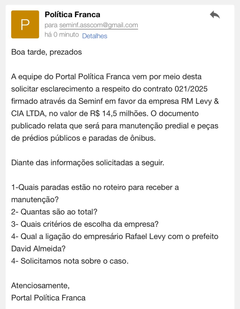 A reportagem solicitou esclarecimentos à Seminf sobre essa contratação milionária e questionou quais paradas receberão a manutenção.