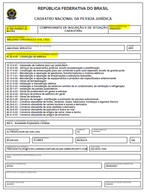 A empresa R. M. Levy & Cia Ltda opera com o CNPJ 41.386.334/0001-22, possui o nome fantasia de Amazônia Serviços, foi aberta em 2021 e tem como atividade principal econômica Construção de edifícios. A empresa fica localizada na Avenida Professor Nilton Lins, Manaus.
