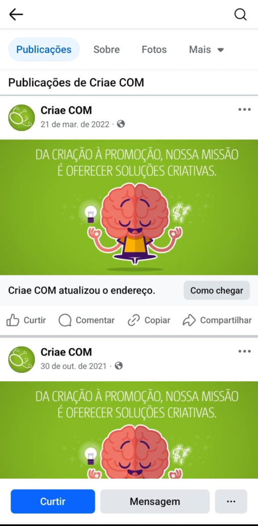 Em uma varredura para verificarmos outros trabalhos nesse nível a órgãos do governo ou empresas privadas, nada foi encontrado. A página da empresa na rede social Facebook não é movimentada desde março de 2022. Confira a imagem abaixo.
