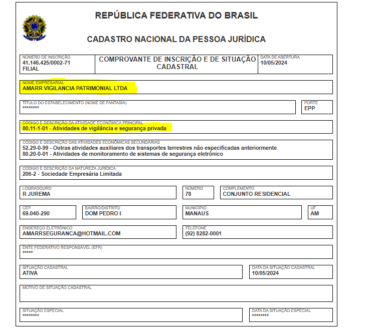 A empresa com a razão social Amarr Vigilancia Patrimonial Ltda, opera com o CNPJ 41.146.425/0002-71 e foi fundada em 10/05/2024. O endereço de sua sede está localizada na Rua Jurema, 78 – Dom Pedro I, Manaus. Sua atividade principal é de Atividades de vigilância e segurança privada.