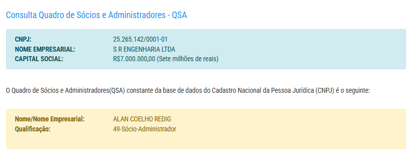 A empresa possui capital social de R$ 7 milhões e pertence a Alan Coelho Redig.