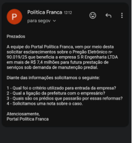 A equipe de reportagem do Portal Política Franca encaminhou um pedido de esclarecimentos sobre essa contratação para a prefeitura de Maués.