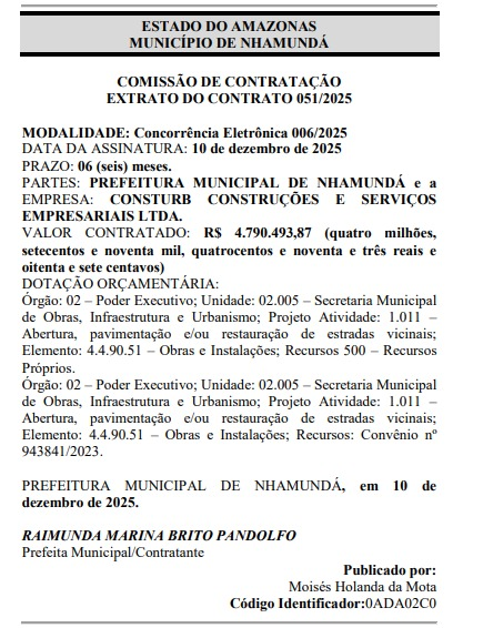 A prefeita Marina Pandolfo (União Brasil), vai gastar mais de R$ 4,7 milhões misteriosamente no município de Nhamundá. O contrato publicado no Diário Oficial dos Municípios (DOM), não revela o destino desses gastos.