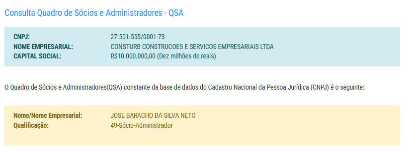 A empresa possui capital social de R$ 10 milhões e pertence a José Baracho da Silva Neto.