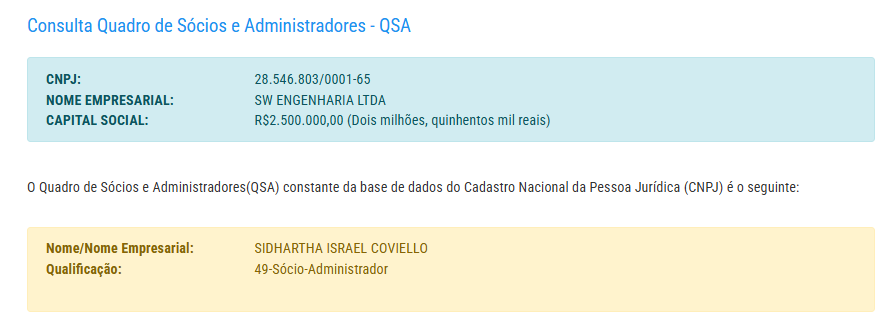 A empresa possui capital social de R$ 2,5 milhões e pertence a Sidhartha Israel Coviello.