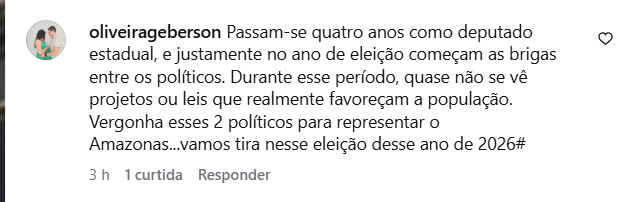 Nas redes sociais o baixo nível não passou desapercebido. Cidade é cotado a candidato à Câmara Federal, pelo grupo do governador Wilson Lima (UB) e do vice-governador Tadeu de Souza (PP). Enquanto Daniel Almeida deve vir para a reeleição e estará posicionado como um dos principais cabos eleitorais do irmão, pré-candidato a governador.