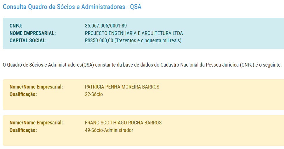 Os responsáveis pela empresa, estão identificados nas informações cadastrais da mesma, como Patrícia Penha Moreira Barros e Francisco Thiago Rocha Barros.