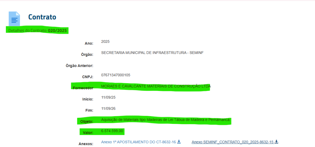 Segundo informações, o contrato terá vigência de 12 meses, para fornecimento de “madeira nobre”, que se refere à tábuas de madeira e perna-manca de qualidade. O acordo foi firmado através da Secretaria Municipal de Infraestrutura (Seminf).