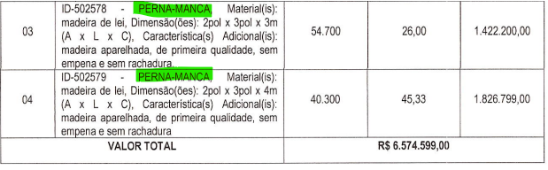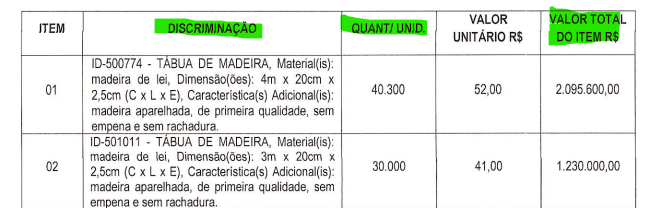 De acordo com o Pregão Eletrônico PE n° 096/2024, utilizado para realizar a contratação, cada tábua de madeira comprada custou cerca de R$ 52,00. No documento a quantidade estimada é de 70.300 unidades, porém no contrato não há especificado se a Prefeitura de Manaus comprou esse total de tábuas ou apenas uma parte delas.
