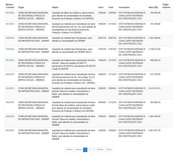 Outro ponto que chama atenção, por qual razão a mesma empresa vem acumulando diversos contratos? Outra questão é que quase todos os contratos são pela mesma secretaria, a Seminf.