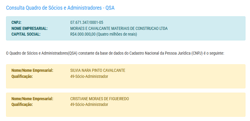 A empresa possui capital social de R$ 4 milhões e pertence a Silvia Nara Pinto Cavalcante e Cristiane Moraes de Figueiredo.