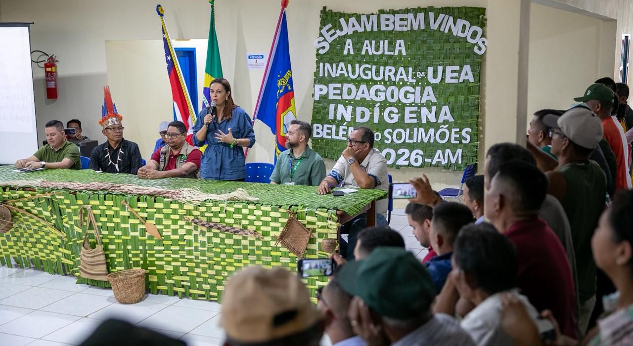 Entre rios, saberes ancestrais e o sonho coletivo de acesso ao ensino superior, a educação indígena no Amazonas alcançou uma conquista histórica. Nesta segunda-feira (23/2), a aula inaugural do curso de Licenciatura em Pedagogia Indígena, realizada em Belém do Solimões, comunidade localizada no município de Tabatinga, marcou a implantação do primeiro polo rural indígena da Universidade do Estado do Amazonas (UEA), consolidando um novo capítulo na formação acadêmica de povos originários no estado.