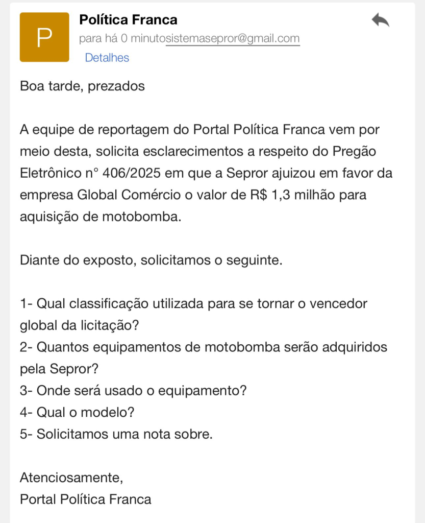 Nossa equipe de reportagem encaminhou um pedido de solicitação de nota a Sepror sobre essa contratação milionária.