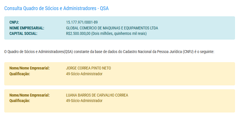 A empresa possui capital social de R$ 2,5 milhões e pertence a Jorge Correa Pinto Neto e Luana Barros de Carvalho Correa.