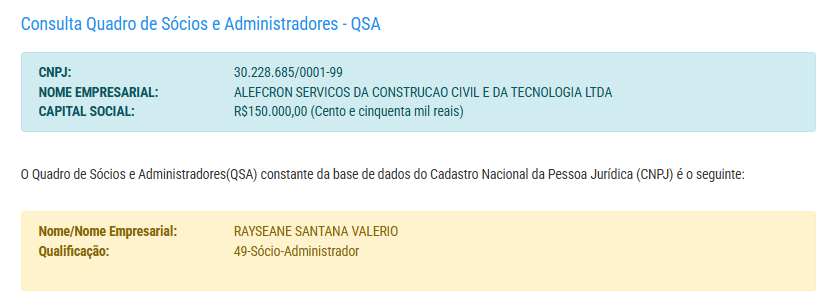 A empresa possui capital social de R$ 150 mil e pertence a empresária Rayseane Santana Valerio.