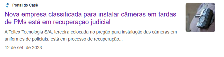 A Teltex, que já tentou vencer uma licitação no estado de São Paulo para a instalação de câmeras corporais em policiais ficando em terceiro lugar, também venceu, em 2024, uma licitação para operar o novo parque de segurança da capital de Pernambuco.