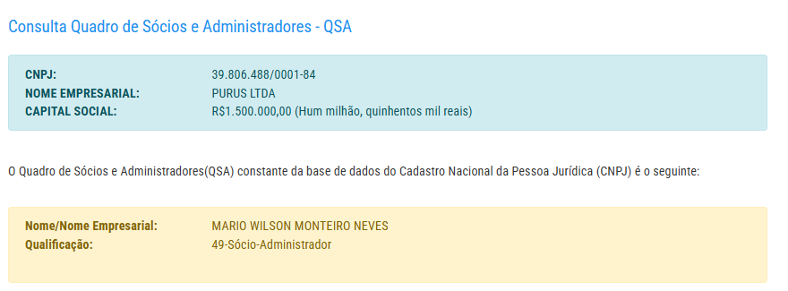 A empresa possui capital social de R$ 1,5 milhão e pertence a Mário Wilson Monteiro Neves.