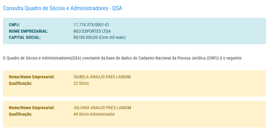 A empresa possui capital de R$ 100 mil e pertence a Isabela Araújo Paes Landim e Juliana Araújo Paes Landim.