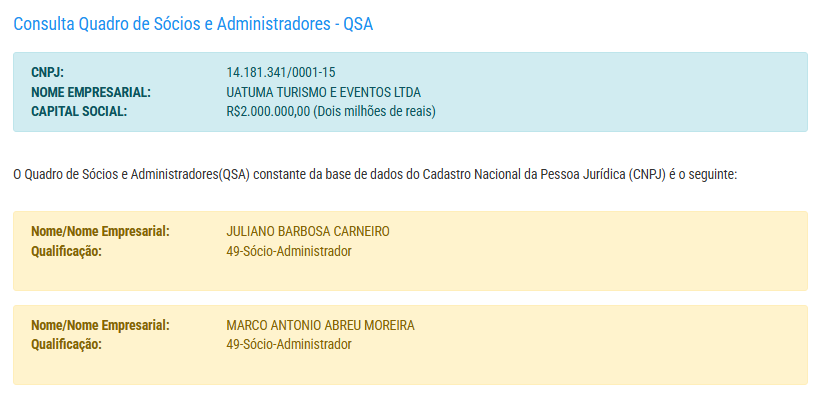 A empresa possui capital social de R$ 2 milhões e pertence aos empresários Juliano Barbosa Carneiro e Marco Antônio Abreu Moreira.