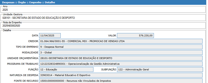 A Secretaria de Estado de Educação e Desporto (SEDUC-AM), na gestão da secretária Arlete Ferreira Mendonça, parece ter encontrado uma super prioridade na educação: premiações. Entre 2024 e 2025, mais de R$ 8 milhões foram repassados à empresa Comercial Mix Promoção de Vendas Ltda, para o fornecimento de uma gama de itens que inclui desde alimentos, bolas, medalhas e até placas de homenagem.