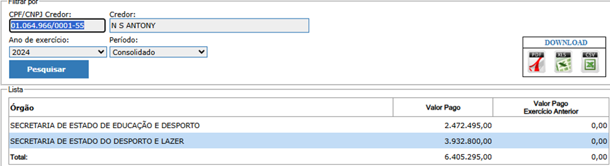 Só em abril de 2025, foram mais de R$ 1 milhão em dois pagamentos: cerca de R$ 500 mil por 9 mil medalhas, 790 troféus e 40 placas de homenagem, e mais R$ 500 mil por materiais esportivos como redes e bolas.