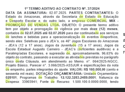 O responsável pelo aditivo é Robert Corrêa Carvalho Costa, coordenador do Núcleo de Gestão de Contratos e Convênios da SEDUC. Mas até o momento, nenhum documento público explica a diferença entre os R$ 160 mil formalizados e os mais de R$ 8 milhões pagos de fato.