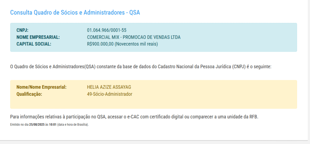 O Comercial Mix Promoção de Vendas Ltda, é de propriedade da empresária Hélia Azize Assayag.