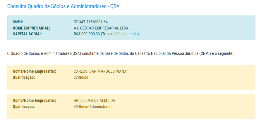 A empresa possui capital social de R$ 3 milhões e pertence a Carlos Ivan Marques Viana e Ariel Lima de Almeida.