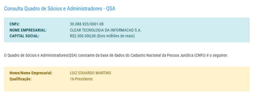 A empresa possui capital social de R$ 2 milhões e aparece como presidente Luiz Eduardo Martins.