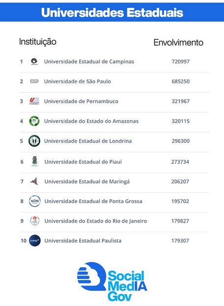 Além das universidades estaduais, o levantamento também apresentou rankings de prefeituras, governos estaduais e federal, câmaras municipais, assembleias legislativas, tribunais de contas e Ministério Público, reforçando a importância da presença digital de instituições públicas em diferentes esferas.