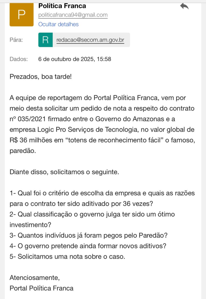 A equipe de reportagem do Portal Política Franca encaminhou a assessoria de comunicação do Governo, uma solicitação de nota.