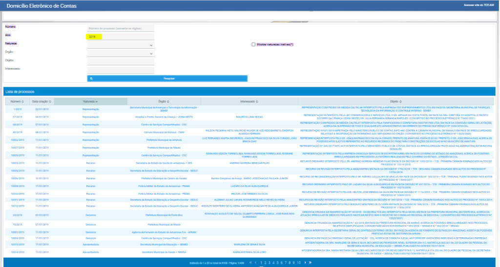 O levantamento foi realizados através de Consultas no Portal da Transparência do TCE-AM: Domicílio Eletrônico de Contas. Além de verificação no Relatório de Controle Fiscal. Entre o biênio 2018-2019 e 2024 (atualmente).